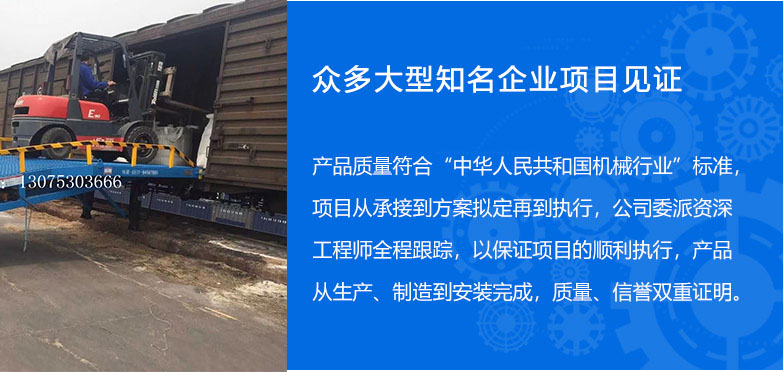>> 13年的登車橋設(shè)備制造經(jīng)驗(yàn) 集設(shè)計(jì)、研發(fā)、生產(chǎn)和銷售于一體的制造型企業(yè),專業(yè)制造液壓登車橋,移動式登 車橋和高空作業(yè)平臺,經(jīng)驗(yàn)豐富,擁有強(qiáng)大的成產(chǎn)技術(shù)和完善的管理模式。 >> 引進(jìn)國際先進(jìn)施工工藝 配備整套專業(yè)自動化生成設(shè)備,引進(jìn)國外先進(jìn)技術(shù), 定期培訓(xùn),確保設(shè)備的高品質(zhì)。 產(chǎn)品具有設(shè)計(jì)新穎、結(jié)構(gòu)合理、升降平穩(wěn)、載重安全、操作簡單、維護(hù)方便等優(yōu)點(diǎn)。